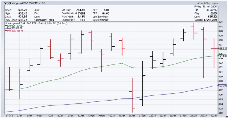 S&P500(VOO)の昨年末から1月末までの株価です。